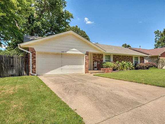 Home Sweet Norman! This adorable home is just what you've been waiting for, featuring three spacious bedrooms, two bathrooms, and a two car garage. Upon entering you will love the sizable living room with a cozy brick fire place and hearth, surround sound, built ins, and a sliding glass door to the patio. The kitchen is well equipped and offers plenty of cabinets and counter prep space! The bedrooms are well appointed and offer their own closets with additional storage! The primary bedroom features a private on suite with open vanity and private shower/toilet area AND two closets! Great fenced backyard! New Roof and Guttering to be put on mid August 2025! Storage Throughout and Indoor Utility Room! Garage Storm Shelter