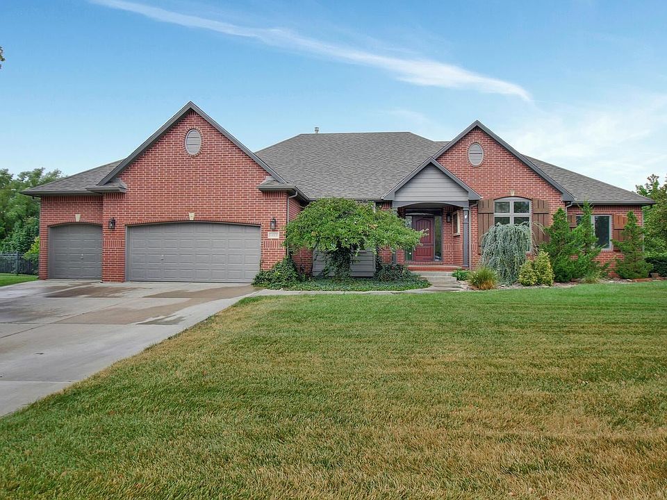 Opulence awaits you! Nestled on a culdesac lot in the desirable Rocky Creek Addition, this fabulous six bedroom, four bathroom home boost over 4400 square feet of living space! Upon entering the home, the grand foyer leads into an impressive formal living room with arched windows allowing for optimal natural light. The exquisite fireplace, with built-in bookcases, is an example of the wonderful moldings throughout this freshly painted home. Chat with the cook in this stunning kitchen/hearth room designed for entertaining! Stainless steel appliances, handsome granite countertops, and an oversized island will appease any culinary enthusiast! The hardwood floors, vaulted ceilings, and split stone fireplace will create a cozy spot for chilly winter nights! The considerable master bedroom features coffered ceilings and a magnificent ensuite bathroom featuring a double vanity with granite countertops, a soaker tub, shower, and a large walk-in closet! Two more bedrooms and a laundry room are also located on the main floor! The basement includes an additional 1,984 square foot of living space including a huge rec room with built-ins, a wet bar, three more bedrooms, and a full bathroom! Enjoy cold drinks and serenity on the covered deck or patio while listening to the cascading waterfall. Feed the whole family with the custom outdoor grill! Don't miss out on this amazing home in the Andover School District!