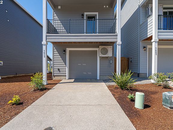 New subdivision in Newberg! Miller E floor plan 1420 sq ft, 2 bedroom, 2.5 bath. Lower level office could be used as 3rd bedroom (no a/c to that room). Quartz countertops in kitchen, laminate flooring, and electric fireplace in great room. Slider out to balcony. Ideal Newberg location with a neighborhood park and walking path! Join us for open houses Saturday and Sunday 12-4 pm located at model home, 1380 N Kilchis. Address shows on google maps.