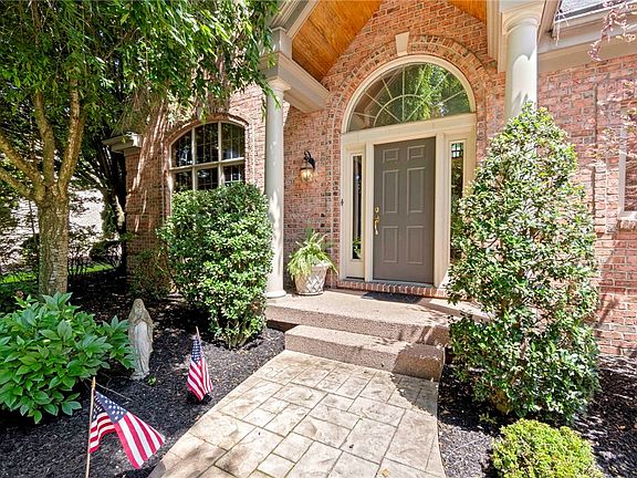 In the highly sought-after Summit of Oakmont, 4 bedroom brick French Provincial home offers timeless elegance. Stamped concrete driveway leads to the entry & rich hardwood floors flow to a stunning open great room with soaring ceilings & an airy loft-style family room above. Den is a standout, ideal for remote work, w/ classic wood paneling, French doors, large windows & custom built-ins. Equipped with stainless steel appliances, the kitchen is well designed, peninsula counter & bright morning room for casual meals. Dining room & living room create perfect flow for entertaining. Coveted 1st floor primary, with jetted tub, shower, dual vanities, & walk-in closet. 1st flr. laundry=convenience. From the great room to a covered patio oasis, you'll enjoy outdoor living with a stone gas fireplace, TV & outdoor kitchen surrounded by professionally landscaped & fenced back yard. Upstairs an open family room, 3 bedrooms & full bath. Lower level is finished with a full bath & plenty of storage.
