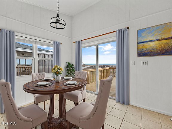 Welcome to your dream coastal retreat! This unique 3-bedroom, 2-bathroom, 1637 sq feet, oceanfront home on the south end of Topsail Beach offers breathtaking water views & modern updates while maintaining its classic charm. Step inside to high ceilings with exposed beams that enhance the airy, open feel of the living space. A stunning shiplap wall frames the cozy fireplace, the perfect spot to unwind after a day on the beach. Recent improvements include interior paint, new luxury vinyl plank flooring, updated light fixtures, brand new decks & a new screened-in porch—perfect for enjoying the sights & sounds of the ocean. The home also features original tilework that adds character & an irrigation system designed for dune preservation. According to the previous owner the roof age is 2018, HVAC is 2019, & a new water heater was installed in 2024 with the current owner. Located in the tranquil south end of Topsail Beach, you'll enjoy a laid-back atmosphere while being close to some of the area's best attractions. Spend your days fishing, shell hunting, surfing, or relaxing on the pristine sandy beaches just steps from your door. Explore the Missiles & More Museum, take a scenic boat tour, or visit the nearby Topsail Beach Skating Rink for fun. When it's time to dine, enjoy fresh seafood & local favorites at spots like The Breezeway Restaurant, Beach Shop & Grill, Larry's DeliQ, & Sears Landing. For a casual evening, grab an ice cream cone at Four Cousins creamery or enjoy live music at one of the area's friendly hangouts. Whether you're looking for a full-time residence, a vacation home, or an investment opportunity, this oceanfront gem offers the perfect blend of comfort, coastal beauty, & convenience!