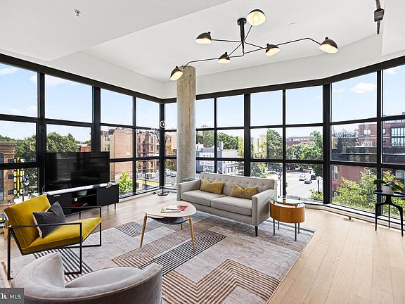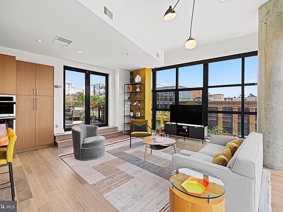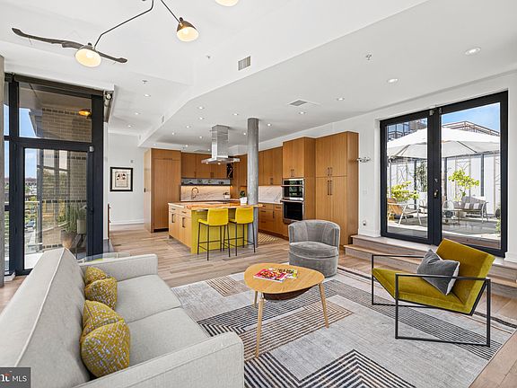 Massive New York Style Flat | 2 Bed | 1 Den | 2.5 Bath | 2,150 Sf | 575 Sf Private Terrace | 2 Separately Deeded Garage Parking Spaces | Building: Boutique Building, 18 Units, Elevator, Built in 2006, Underground Garage | Unit: Open Floor Plan, Wide Plank White Oak Hardwood Floors, 67 Linear ft of Floor-to-Ceiling Windows, South Facing, Corner Unit w/ Amazing Views of 14th & P St, 11ft+ Ceilings, Custom Roller Shades, Private Balcony, Designer Track Lighting, Recessed LED Lighting, Walk in Closet w/ Custom Built-ins in Master, Storage Unit | Kitchen: New Kitchen 2024, Bosch Induction CookTop, Samsung Convection Microwave Combo, Samsung Convection Oven, Hood, Full-Size Bosch Paneled Dishwasher, Miele Column Fridge, Sub-Zero Paneled Freezer Drawers, Calcutta Montreal Quartzite Countertops & BackSplash, Christiana Custom Cabinetry, Faucet, Live edge wood Island seating for 2 | Baths: Marble Tiling in Primary, New Quartz Topped Dual Vanities in Primary, Duravit Vessel Sinks w/ Jado Designer Faucets in Primary, Frameless Glass Shower Enclosure, Scavolini Cherry Vanities w/ Storage, Slate Tiling, Grohe Fixtures, Full Sized Tub, Toto Toilets