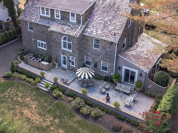 A Classic Rydal Colonial on a prestigious street. Curb appeal abounds in this sophisticated all stone home with a a full three stories! 5 bedroom 3 full and 2 half bath picture perfect property. Unparalleled space and inspirational views. Large welcoming front to back foyer with painted black and white wood floors, extensive moldings, new powder room and coat closet. The impressive turned staircase with elegant windowed landing. An oversized living room with fireplace and perfect symmetry. Two sets of glass french doors lead to family room/den overlooking extensive extra side lot included in sale. The dining room with gas fireplace is perfect for entertaining on a grand scale or for intimate dinner parties. Gourmet fully equipped kitchen with Sub Zero Fridge, 2 dishwashers, butcher block counters, and an abundance of cabinetry opens to a generously sized breakfast/sitting room. The 2 sided fireplace is a treat between the dining and breakfast rooms. An enchanting second staircase to second floor from the kitchen is a plus. The sensational main bedroom suite is like being on vacation at a European Spa. The new ensuite bathroom with oversized shower and furniture like vanity is a treat. There are several large closets in the suite, one holds a washer and dryer, another for linens and the indulgent oversized walk-in was created from the original nursery. Two more large corner bedrooms with a refreshed hall bath. Third floor offers 2 big beautiful bedrooms a hall bath, cedar closet and another large storage closet. Outside the new slate patio extends the length of the house and boasts a new retaining wall. Extensive landscaping has been added to the beautiful yard to enhance the mature landscape. Two car detached garage. The location can not be beat. Walk to the train to the city or Airport, fine dining and shopping. A quick car commute to the city . Excellent private and public schools nearby. Close to Whole Food and Trader Joe's. Enjoy Abington Township park system, libraries and summer pools. A perfect Choice!!
