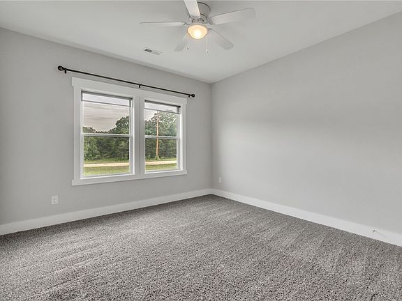 Don't let this opportunity pass you by! Explore this exquisite, almost-new home tucked away on a private street. This residence boasts four bedrooms and two bathrooms, filled with luxurious upgrades and situated on a picturesque lot. Upon entering, you'll be greeted by soaring ceilings that seamlessly transition into an open-concept living room and kitchen, perfect for entertaining. Take note of the charming wood insets in the ceiling, adding a touch of elegance. The kitchen is equipped with stainless steel appliances and a spacious island, ideal for both cooking and gathering. The master bedroom offers a tranquil escape with its own private area featuring a generously sized tiled shower, separate tub, and double vanity. Additionally, the two other bedrooms feature ample closet space and share a well-appointed hall bathroom, conveniently located for guests. Prepare to be impressed by the abundant storage throughout the home—closets abound! Enjoy the convenience of easy access to I-85, making commuting a breeze.