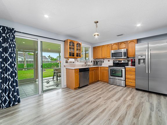 Welcome to this 3-bedroom, 2-bathroom single-family home on an oversized lot with no HOA fees or restrictions. Featuring a new roof (2025), impact glass windows and doors, freshly painted interior, A/C (2024), and water heater (2019), this home is move-in ready. Tile flooring throughout. The kitchen includes stainless steel appliances, and the open layout extends to a covered and screened patio with room for a pool. The garage has been converted, offering flexible use of space, while the fenced backyard includes a shed for extra storage. With parking for two vehicles, ample space for a boat, RV, or trailers, and a prime location near Breakers West Country Club, parks, shopping, and dining--this property is a rare find. Mortgage savings may be available for buyers of this listing.