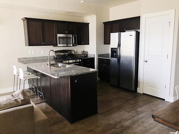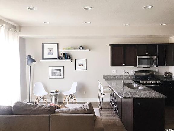 Immaculate Townhouse built in 2014! Unobstructed Views of the Mountains! Very Quiet Location! You'll love the Classy Grey tones in this Awesome Home with Engineered Hardwood throughout the Family Room, Dining and Kitchen! You'll love cooking in this Spacious Kitchen with Gorgeous Granite Countertops and Stainless Steel Appliances! Lots of Cabinets and a Separate Pantry! 3 Bedrooms, 3 Baths! Bathrooms have Quartz Countertops! (Third bedroom could also be Family Room and with Bathroom!) Finished Basement! 2 Car Garage! You'll love this Beautiful Community with a Lovely Pool, 3 Playgrounds and lots of Open Grass areas! Close to Access for Legacy Parkway Hiking and Biking Trail! Spoil yourself with Snow Removal and Landscape Maintenance provided! YOU ARE HOME! Don't miss this wonderful opportunity! Call for your personal showing! Easy Access to Freeway, 10 Mins to SLC and 15 to the Airport! Buyer to verify all