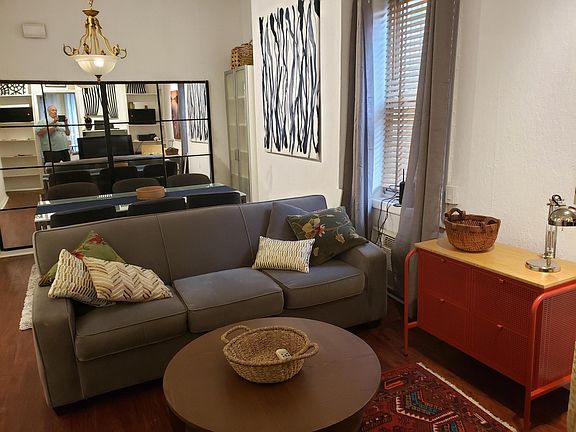 New Listing! Very rarely-available. "At the corner of 14th and Everything." Fully Beautifully Furnished with own large rear deck. Not available unfurnished. Totally separate entire 1st floor unit in very historic townhouse with own entrances. $2200 plus set required $100 monthly utilies fee (a bargain!). Very low for this block where very small apartments rent for much more. 1 year lease preferred but negotible. Furnished 1 Bedroom- Big-700 square feet. First floor in renovated end unit historic 1865 townhouse with windows all around (including bay windows), 12 foot ceilings, own front entrance. Beautiful big front garden. Remodeled fully-stocked luxury gourmet kitchen with granite countertops, stainless steel cabinets, French drawer refrigerator, gas stove, high end dishwasher. Beautiful rear deck. On-Street parking only. W/D shared 3 ways. *Rear deck with gas grill *Front-load washer/dryer (shared 3-ways) *High-speed FIOS Broadband and Wi-Fi shhare possible *14' Designer Bedroom Wardrobe System Bring your suitcase and toothbrush and enjoy this vibrant neighborhood immediately. Walk to hundreds of cafes, theaters, shops, and grocery stores. (Trader Joe's 1 block, Whole Foods and Safeway 3 blocks . Logan Hardware, Ted's Bulletin, Aslin Beer Garden and Doi Moi on corner ) . Post Office/FedEx Office 2 blocks. 5 minutes walk to Green Line, 15 minutes to Red Line, buses at corner. Capital Bikeshare half-block away. Taxis 100' away, Uber/Lyft plentiful, ZipCars closeby. Circulator bus on 14th. Please email or text first with particulars and a number or contact or best just phone. Utilities included ! Possible 1 gig wireless share.