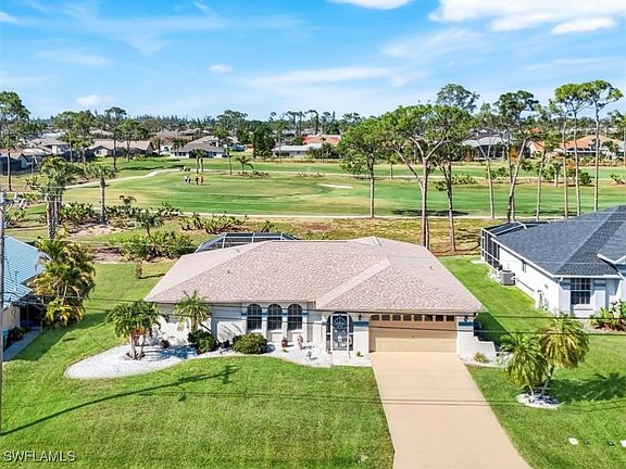 PRICED TO SELL - MUST SEE GOLF COURSE HOME! Located in Southwest Cape Coral on the 13th Hole of Palmetto Pines Golf Course, this Beautiful, Move-in Ready and Spacious Home is Being Sold Turnkey, with 1,958 sq ft of Living area, 3 Bedrooms, 2 Baths, and a 2-Car Garage. You will Love watching the golfers go by from the comfort of your 358 sq ft Air-Conditioned Florida Room, or while spending time in your Heated Hot Tub in the 720 sq ft Screened Patio. Major Updates include a New Roof in 2022, New Water Heater in 2019, New AC in 2017, and the Patio Screens were replaced in 2022. The Kitchen has Stainless Steel Appliances, Breakfast Bar, and a Convenient Pass-through Window to the Florida Room. In addition to a Gorgeous Golf Course View and an Open Floor Plan, this Very Well-Maintained Home also Features a Living Room, Family Room, Formal Dining area, Fresh Interior Paint, Tile on the Diagonal, Carpet in the Bedrooms, Walk-in Closets in All Bedrooms, Drop-down Stair Attic Access, and Great Curb Appeal. The Kitchen, Family room, All Bedrooms, and Lanai are equipped with Ceiling Fans. The Home is Storm Protected with an Electric Roll-down Shutter on the Lanai and Clear Manual Shutters for all Windows. Palmetto Pines Golf Course is an 18-hole newly renovated golf course, No membership is required, you can pay as you play or apply for membership, and there is No HOA. Perfect location close to Dining, Shopping and Beaches, with easy access to Fort Myers, RSW International Airport and the Punta Gorda Airport. This Home has had NO flooding. ALL UTILITY ASSESSMENTS ARE PAID IN FULL AND THIS HOME DOES NOT REQUIRE FLOOD INSURANCE!