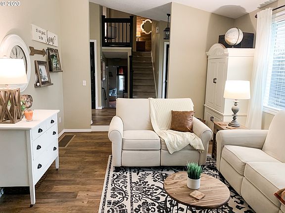 Multi-generational living or Airbnb VRBO! New siding, roof, furnace/heat pump. Large covered back patios. 2nd living space w/separate entrance, large living area, kitchen, bedroom and bathroom for family member/rental/guests. Main house has 2 great rooms, 3 bedrooms, 2.5 baths, balcony with a retractable awning and a view of Mt. Hood. Large Master bedroom, oversized master bathroom w/soaking tub, large storage room. RV parking and space to entertain family and friends. ADU, In-law Suite