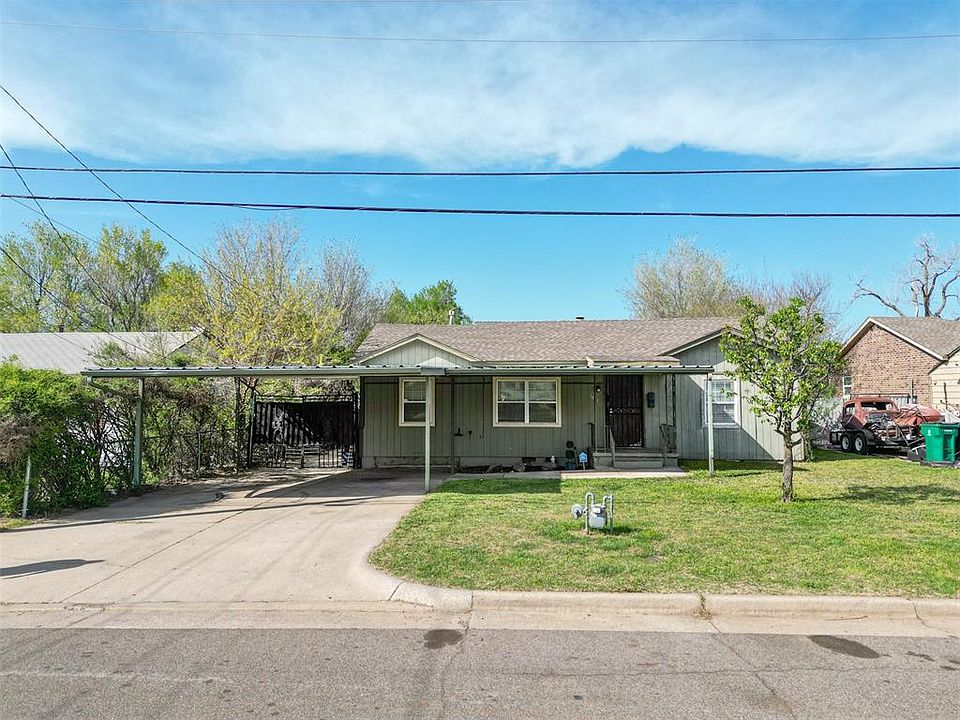 ALMOST HALF AN ACRE IN SW OKC! This charming 3-bedroom, 1.5 bath home has been beautifully updated and is ready for you to move in. Pulling into your new home, you will be greeted by a spacious, covered parking area and a cozy front patio that adds great curb appeal. The interior features, stylish tile flooring in all common areas, and brand-new carpet throughout bedrooms, creating a modern, fresh atmosphere. Fresh paint has been applied throughout, giving the home a clean and updated feel, with a new hot water heater as of Mar 2025! Your large kitchen and dining area are key focal points of this stunning property. Boasting sleek granite countertops, beautiful stained cabinets, and stainless steel appliances. The master suite is on the other side of the home allowing, for extra privacy and comfort, equipped with a large walk in closet and half bath for added convenience. Located on nearly half an acre in the heart of Southwest Oklahoma City, this home offers plenty of outdoor space. With a gran wrought iron privacy gate upon entrance, allows for all kinds of activities and includes easy access for parking cars, trailers, or other vehicles. If you are looking for space, look no more, this one has it all. With close proximity to both I-240 and I-44, this home is conveniently located for easy access to major highways and local amenities. Make this stunning property yours today! Will not last long! Spring and Summer fun await! Create ever lasting memories at your new home! Buyer to verify schools.
