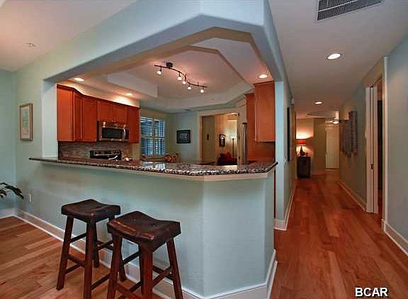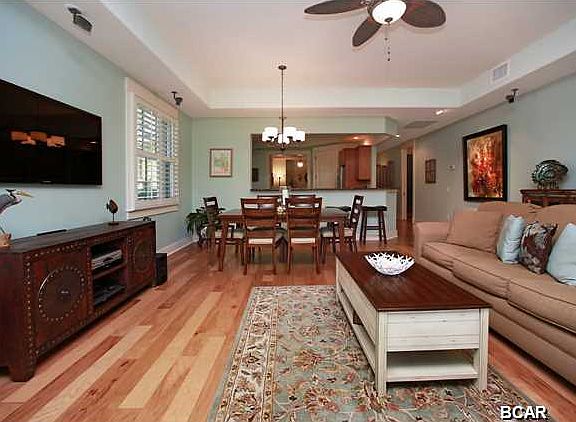 Looking for a private oasis to call home with luxurious amenities at your fingertips including access to serene Lake Powell, a lakeside pool and fire pit, nature trails, and Greg Norman designed Shark's Tooth Golf Course? This phenomenal 2,040 sq. ft. 3-bedroom, 2-bath condo is located in Clubhouse II of Wild Heron, a prestigious gated golf community. Clubhouse II is a low density 12 unit association comprised of three buildings with four units in each, two upper and two lower. Unit 1413 is conveniently located on the ground floor with paver stone entry & driveway and includes a 2-car garage and screened-in patio with views of the 9th tee box and fairway. This home has been incredibly maintained and the interior is very spacious with an open floor plan and raised ceilings. Beautiful custom hardwood floors are featured throughout the living & dining area, kitchen, and entry. There are 20" tile floors in the bathrooms and carpet in the bedrooms. The living area is very inviting with direct access to the screened-in patio, which is the perfect place to relax, take in the peaceful environment, or entertain. The 9 ft. sliding glass doors maximize the views of the golf course and bring the outside in! There is a second living area that is cozy with built-in bookshelves and could easily be converted into a formal dining room, library, or office. The current dining area is off the living area and opens up to the kitchen and breakfast bar. The kitchen is a dream with top of the line stainless steel appliances, granite countertops, breakfast bar & island, beautiful glass tiled backsplash, pullout wood cabinets, large pantry, recessed lighting, and a sitting area great for breakfast or a cup of tea with a friend. The master bedroom is off the living room and is very spacious with Bay windows lending views of the golf course and there is plenty of storage with the huge walk-in closet and additional closet directly across. The on-suite master bathroom is breathtaking with tile floors, granite countertops, double vanity, jetted garden tub to unwind in, and separate walk-in shower with custom tile. For added privacy, the two guest bedrooms are separate from the master bedroom, are adequate in size both featuring oversized closets. There is a guest bathroom with tile floors, granite vanity, and a full sized tub & shower with custom tile to the ceiling. This unit also features a laundry room with custom wood shelving, additional storage area (currently being used as a small office with storage), and custom window treatments throughout including plantation shutters, blinds, and drapes. Wild Heron does not allow long term rentals which adds to the communities privacy and enables this condo to feel more like a home. Wild Heron's unique architectural style is apparent in each residence and community structure with a focus on natural finishes like slate, river rock, split stone, glass, wood and metal. A series of walkways links various areas of the community including a boardwalk & dock to Lake Powell, a Boat House Pavilion at Prospect Point with kayaks and canoes, lake front pool & hot tub, kiddie pool, outdoor fire pit & grilling area, nature trails, a community gazebo & playground, oak-filled park, fitness center, and renowned Greg Norman-designed Shark's Tooth Golf Club. There are limited golf memberships still available for the club. The quiet setting of Wild Heron is only minutes from the Gulf of Mexico and is bordered by Walton and Bay counties. Conveniently located to Scenic Hwy. 30-A (to the west), Pier Park (to the east) and within 30 min. of the Northwest Florida Beaches International Airport. Do not miss out on this incredible opportunity to own at one of Panama City's finest developments.