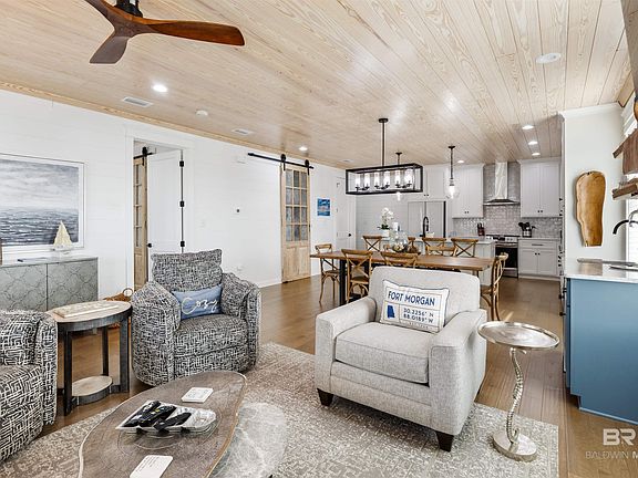 "MOTIVATED SELLER" Welcome to your coastal paradise in Fort Morgan! This single-family home offers 2232 sq ft of luxurious living space, featuring 5 bedrooms and 3.5 bathrooms. The raised coastal design provides fabulous views of white sandy beaches from the two porches, perfect for enjoying the gulf breeze. Sold fully furnished with tasteful decor, this property is just 200 yards away from deeded beach access.Built Gold Fortified , this home sits high above flood level requirements, offering peace of mind. The interior boasts high ceilings, crown molding, quartz countertops, and a wet bar for entertaining guests. Exterior features parking for multiple cars, ground level storage and a convenient outdoor shower for cooling off after a day at the beach. Gated community with pool access and a marina across the street on Mobile Bay, making it ideal for water enthusiasts. This coastal gem is perfect for a vacation home or an investment property - excellent rental potential. Don't miss out on this opportunity to own your slice of paradise! Buyer to verify all information during due diligence.