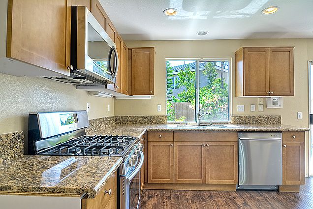 - Included: Dishwasher, Garbage disposal, Microwave, Range / Oven