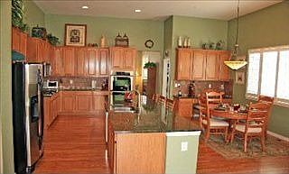 WELCOME HOME! Spacious Open Floor Plan In Mint Condition on a Quiet Street! Enjoy the Rich Abundance of High Ceilings, Hardwood Floors, Ceiling Fans, Plantation Shutters & Hunter Douglas Window Coverings. The Gourmet Kitchen Features 42" Cabinets, Slab Granite Countertops, Walk-In Pantry, Huge Island, Breakfast Bar, Desk, Bright Eat- In Nook and Stainless Steel Appliances Including: Double Oven, Gas Cook-Top, Microwave & Refrigerator. Relax in the Master Suite With a Five-Piece Tiled Bath Including Jetted Tub and Walk-In Closet. You'll Love Entertaining in the Great Room With Gas Fireplace and Access To The Rear Patio. Mtn Views! Hurry!
