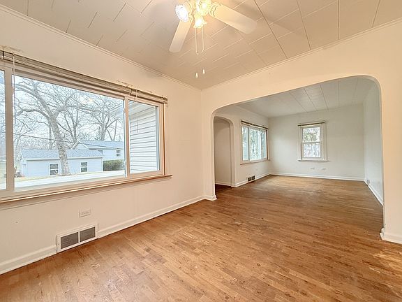 Welcome to this delightful single-family home nestled in the highly desirable Burtons Bridge subdivision. Full of character and vintage charm, this home features beautiful arched doorways, solid wood two-panel doors, and a retro-style kitchen complete with a walk-in pantry. The spacious living and dining rooms are bright and inviting, each showcasing large picture windows that flood the space with natural light.. Beautiful hardwood floors are ready for a fresh finish, bringing even more warmth and style to the interior. The serene setting includes a large lot, concrete driveway, two-car garage, and an oversized shed with an overhead door-perfect for extra storage or a workshop. You'll appreciate the low-maintenance vinyl windows, the potential of a full unfinished basement, and the tranquility of a scenic setting just minutes from the Fox River, Chain O'Lakes, local parks, and countless outdoor activities. Located within the award-winning Prairie Grove and Prairie Ridge school districts, and close to shopping, dining, and more. This is a rare opportunity to personalize a truly charming home in an unbeatable location. Schedule your showing today!