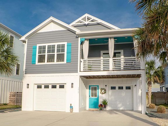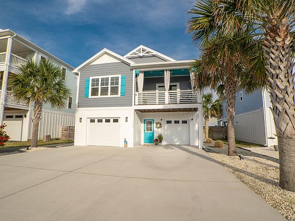 Welcome to your dream beach home! Built by respected local builder Dutch Built Homes, this stunning two-story retreat offers the ideal balance of style and coastal charm in Carolina Beach. Step inside to see the first of two spacious living areas-one on each level-providing the perfect setup for gatherings, relaxation, or multigenerational living. This first living area features a built-in wine bar and beverage cooler, adding style and convenience for entertaining. On this floor, you'll also find a private guest suite with its own connected bath and access to the lower living room, offering comfort and privacy for visiting friends or family. Upstairs, you'll find the main living area is open and airy, and features a chef-inspired kitchen with an induction cooktop (gas hookup also available), sleek stainless steel appliances, granite countertops, and an oversized island that's perfect for entertaining or casual family meals. This floor has three additional bedrooms, including the spacious primary suite complete with dual walk-in closets and a luxurious bathroom featuring a spacious walk-in shower. Head outdoors to enjoy the highlight of the house: the expansive covered patio, complete with a full outdoor kitchen and retractable screen, creating the ideal setting for year-round entertaining or relaxing dinners al fresco. Don't forget to grab a drink from your beverage fridge just inside! Around the corner, you'll find a convenient outdoor shower, perfect after a sandy beach day. This home also features two garages- one fits a full size vehicle, and the other one is perfect for a golf cart or small car. This extra space is ideal for extra storage or stashing your beach gear. Located just a block from the Island Greenway and within minutes of the beach, this home offers the ultimate in coastal living. Whether you're looking for a full-time residence, second home, or investment opportunity, this Carolina Beach gem checks every box.