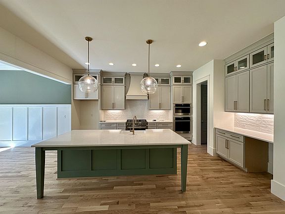 2023 Parade Home! 1st floor owner's suite with spacious bath incl. separate tile shower and freestanding tub. Gourmet kitchen features ss appliances incl. Bertazzoni gas range, quartz tops, range hood, tile backsplash, wall oven, microwave, and large island. Rear porch features outdoor fireplace making the perfect space for relaxing and taking in the outdoors!