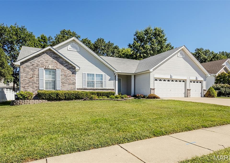 Step inside this stunning 3 bedroom, 2 bath ranch and be welcomed by a bright and airy great room featuring gleaming hardwood floors, soaring vaulted ceilings, and a cozy gas fireplace framed by windows that flood the space with natural light.  The spacious kitchen offers an abundance of cabinet and counter space, a bay window dining area, and easy access to the main-floor laundry. An open spindle staircase leads you to the lower level, providing a perfect opportunity for future expansion.  Retreat to the primary suite with vaulted ceiling, walk-in closet, and a spa-like bath complete with double vanity, separate shower, and relaxing soaking tub. Enjoy outdoor living on your amazing covered patio, overlooking the backyard with great shade from the beautiful trees. Attractive curb appeal, open floor plan, and a fantastic location make this home truly special!