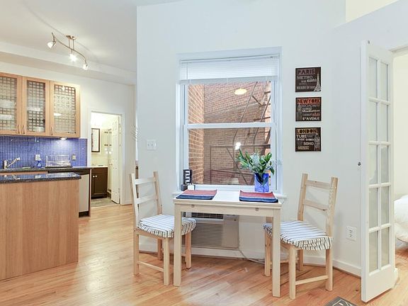 Fully furnished Logan Circle Jr-1 bedroom, 1 bathroom condo on the 2nd floor of a mid-rise condo building in the best location! Walk out your front door to take in the restaurants, shops, and a brand new Trader Joe's grocery store, all within footsteps. The property features an open living area with hardwood floors throughout. The kitchen includes stainless steel appliances, granite countertops, and all the tools needed for cooking. Enter the bedroom through the french doors and there is a queen bed along with a walk-in custom closet. The property has an in-wall air conditioning unit. The shared washer and dryers are located on each floor and are coin-operated. Less than a block to Trader Joe's grocery store, gourmet coffee shops, the U Street Farmers Market on Saturdays, plus some of DC's top restaurants, 14th Street retail, endless restaurants, and easy transportation to Downtown. The U Street Metro (Green and Yellow lines) approximately 2 blocks away and the Dupont Circle Metro station (Red Line) is approximately 8 blocks away. Walk Score: 97 (Walkers Paradise), Transportation Score: 89, Bike Score: 95