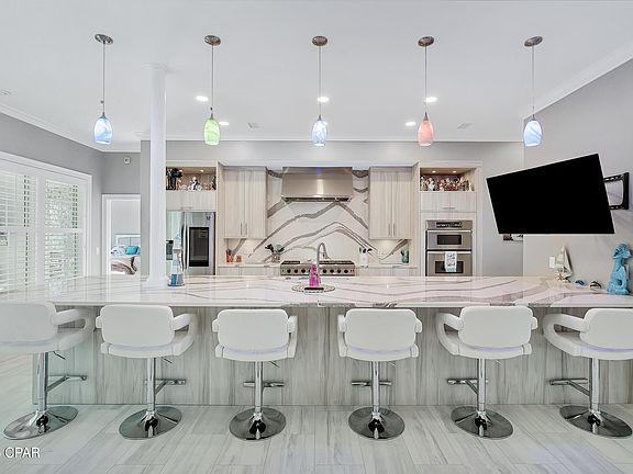 You will also love that this home boasts plenty of parking on the pavered driveway, perfect for entertaining! This home has an attached 2.5 car garage, perfect for storing your own vehicles as well as a golf cart - since Bay Point is one of the most golf cart-friendly neighborhoods in Panama City Beach, Florida.