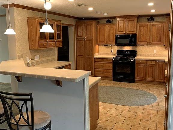 - Kitchen Features: Breakfast Bar, Cabinets Stain, Laminate Counters, View to Family Room