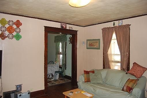 Story and a half-- two bedroom home with formal dining room, kitchen, living room and open staircase. Lots of natural woodwork and hardwood floors. Open covered front porch, 1 plus car garage and garden shed. All appliances will stay.