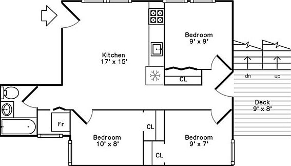 1 - 3 bed/1 Bathroom - Rear facing unit w/private deck available for 2400 Nice size rooms with private entrances. Coin operated laundry facilities are in the basement and easily accessible. Please see pictures for additional info and floorplans