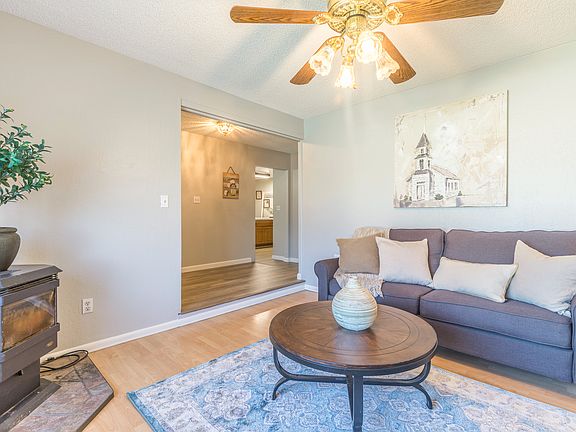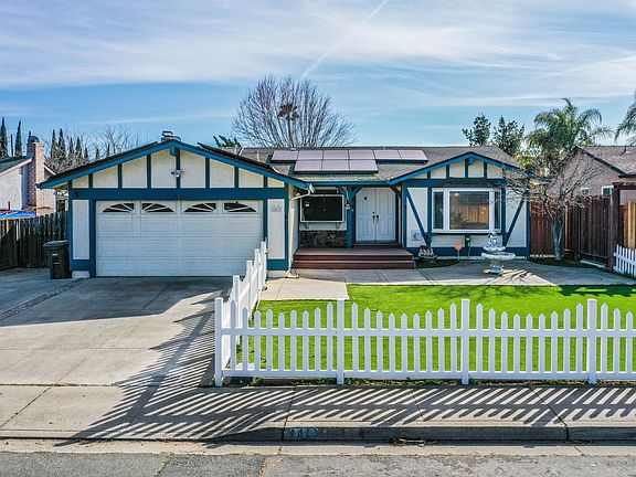 The front of the house has a large white fence around newer artificial grass and a large front porch. Fresh paint and updated floors throughout. The kitchen has been updated with double sinks, stainless steel refrigerator, stainless steel stove, dishwasher, and a spacious eating area with bay windows. The family room has vaulted ceilings, ceiling fan, and a wood-burning fireplace with brick surround. The large sun-room has sweeping views of the back yard and is perfect as an extra room, playroom, or anything that you want to turn it in to! Both bathrooms have been updated with newer vanities, shower walls, and tile floors. The master bedroom has a ceiling fan, large closet with sliding doors, and doors to access the sun-room. The fully fenced back yard has spacious side yards, lawn, waterfall, pond, and storage shed. Close to downtown Oakley, schools, and shops nearby!