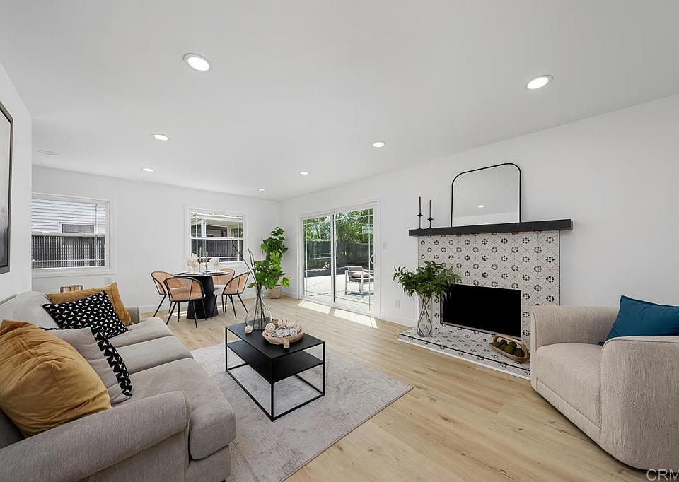 Welcome to 14130 Frame Rd – A Stunning Renovation in the Heart of Poway. Discover modern comfort and timeless style in this beautifully renovated 4-bedroom, 2-bathroom home, ideally located in the highly desirable Poway community. Thoughtfully upgraded from top to bottom, this turn-key gem offers high-end finishes and functional elegance in every room. Step inside to find brand-new vinyl plank wood flooring, fresh interior paint, updated doors, and a strikingly redesigned modern fireplace that adds warmth and character. Energy-efficient windows flood the open-concept living areas with natural light, while recessed lighting and updated light switches/outlets enhance the clean, contemporary feel. The chef’s galley kitchen is a true highlight, featuring sleek quartz countertops, white cabinetry, stainless steel appliances, gas cooking, and a built-in wine cooler—perfect for entertaining or daily living. Both bathrooms have been tastefully remodeled with modern vanities, updated fixtures, and spa-inspired finishes for a luxurious touch. A new roof provides long-term peace of mind and value. Outside, enjoy your private backyard oasis with no direct rear neighbors—an ideal retreat for morning coffee, family time, or weekend gatherings. Located just minutes from parks, boutique shopping, and trendy dining, this home also lies within the top-rated Poway Unified School District, making it perfect for families seeking top-tier education and a strong sense of community. With its impeccable renovations, thoughtful design, and unbeatable location, 14130 Frame Rd is the perfect blend of style, comfort, and convenience. Don’t miss the chance to make this beautifully upgraded home yours!