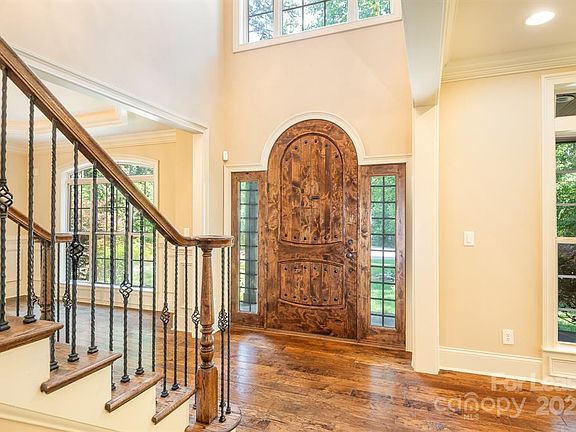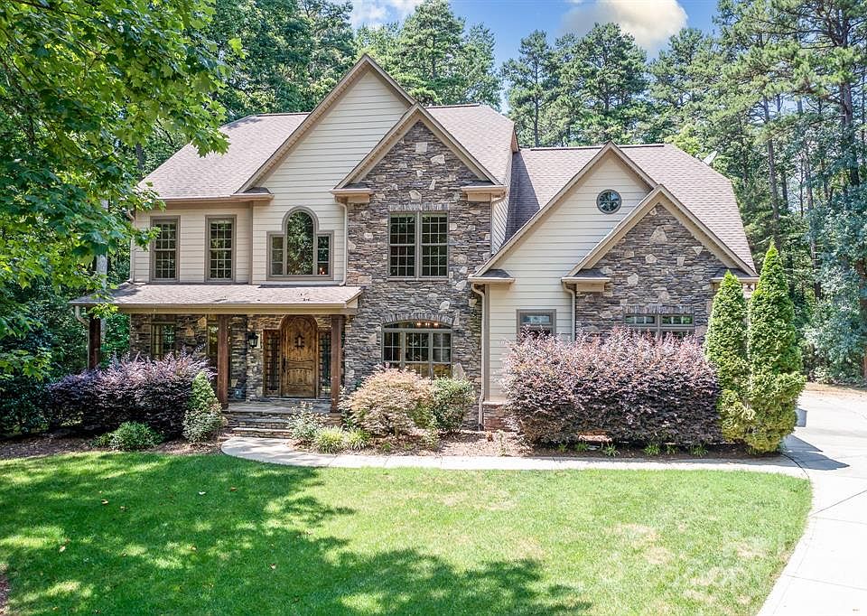 Feel like you are living in a mountain lodge in this executive style home at the end of a cul-de-sac. This unique home is designed perfectly for entertaining with all the rooms working together for large gatherings or intimate parties. Boasting 4 bedroom, 3.5 bath plus bonus room, the home features beautiful hand scrapped hardwood floors on the main and some of the upstairs with heavy molding throughout. Lovely living room w/bay window & heavy moldings. The office features a custom built-in & heavy molding. The family room that is the heart of the home boast an incredible stone fireplace, coffered ceilings with lighting, custom antler chandelier and heavy molding. The large entertainers dining room features heavy molding & tray ceiling. Massive chefs kitchen w/5 burner gas cooktop, 2 ovens, huge island w/seating, walk-in pantry, beautiful granite counters, under cabinet lighting and range hood. The sunroom can be used for eat-in dining, play area for the kids, sitting area or peaceful reading nook. A nice powder room and 2 closets for storage round out the first floor. Upstairs is an amazing primary bedroom with a beautiful reading nook that has seasonal lake views! The massive walk-in closet features built-in mirrors, crystal chandelier & attic storage. The spa like primary bathroom has a massive jetted tub and walk-around shower, separate, under mount sinks with granite counters, large linen closet & water closet. 3 big secondary bedrooms & 1 has an on-suite bath. There is also a hall bathroom with dual under mount sinks and granite. Upstairs also features the laundry room. The huge bonus room has 2 TV's & projector! There is a massive 4 car garage with hanging storage racks, built in cabinets, exercise mat and a mini-split so you can use the garage year round! The home has amazing privacy - you cannot see neighbors from the front porch, backyard or driveway most of the year. The lovely backyard has a two tiered patio, metal fence and bench. The location cannot be beat - only minutes to Birkdale Village, shopping, dining & entertainment. Blythe Landing Boat Launch is only moments away. This home has easy Access to I-77, Uptown Charlotte & the airport. In under 2 hours you can be in the mountains or 3.5 hours to the beach. One dog conditionally allowed - No CATS.