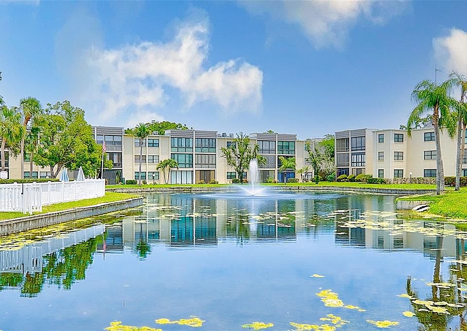 AMAZING LOCATION in the very popular and sought after 55+ community of Lakeview of Largo. This is a 2 bedroom/2 full bath FURNISHED CONDO, located on the FIRST FLOOR and it has great, serene water and fountain views. Kitchen and baths have been updated. Newer flooring throughout. The new carpet in the bedrooms was installed less than one year ago. Both bedrooms have been freshly painted in May of 2025. Resort style amenities include 3 pools of which one is heated, clubhouse, shuffleboard, grilling areas, and scenic walking paths. Primary bedroom has a large walk-in closet, an en suite bath which includes a separate vanity and sink area and a separate area for the bath which has a tub/shower combo. There is a wall of glass sliding doors that leads to your back, covered and enclosed patio. Relax and enjoy the beauty as you drink your morning coffee. The maintenance fees cover many items: Cable TV, Community Pool, Insurance, Internet, Maintenance Exterior, Maintenance Grounds, Manager, Pool Maintenance, Recreational Facilities, Sewer, Trash, and Water This location is ideal and it is only about one mile from the beaches. Not located in a flood zone. It is high and dry. Just a short drive to two major airports. Close distance to grocery stores, restaurants, banks, bus stops, and some even ride their bikes to the beach! Come and enjoy this active community!