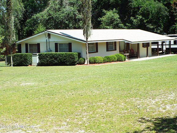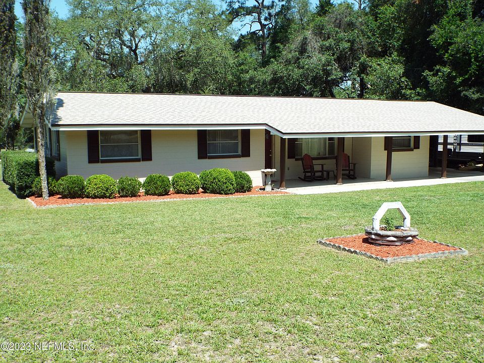 A must see!! This 3 bed/2 bath home on almost a full acre has fresh exterior painting, brand new roof & new septic system. All block construction w/plenty of storage in 2 out buildings. Large covered rear patio w/outdoor sink & countertops allows for plenty of entertaining with family & friends. Entire rear yard is fenced w/mature shade trees & fruit trees. Need a home office, hobby room or 4th bedroom? This home has it in a new finished room off the carport that is ducted to the house unit. Large closet in the owners 3 piece bath. Ceiling moldings throughout. Dining & living room have open concept feel. Built in cooktop & oven. Convenient to everything in Baker county. Just miles from I10, this property is a country home but close to town & schools.