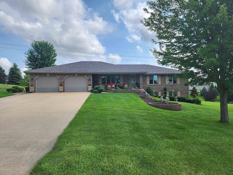 This stunning all-brick walkout ranch offers 3 bedrooms, plus a non-conforming 4th bedroom, 3 full bathrooms, and a spacious 3-car tandem garage. Need more room? There's also an 11 x 21 garden garage on the lower level! The expansive 23 x 31 family room downstairs is ideal for entertaining or relaxing. Enjoy the fantastic patio with a pergola that overlooks the large yard, and take in the views of the picturesque pond on the adjacent property. New roof in April 2024 and replacement windows (Andersen) in September 2024. This home perfectly combines comfort and tranquility.