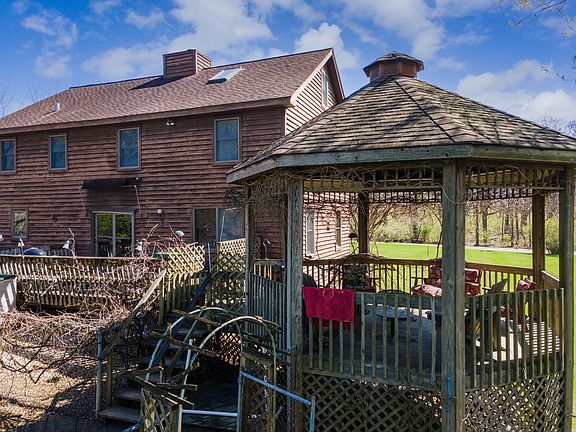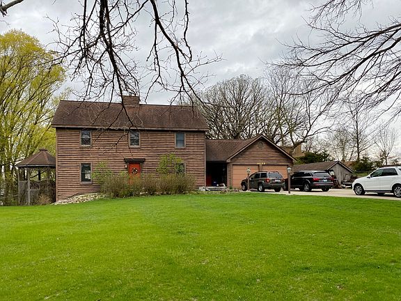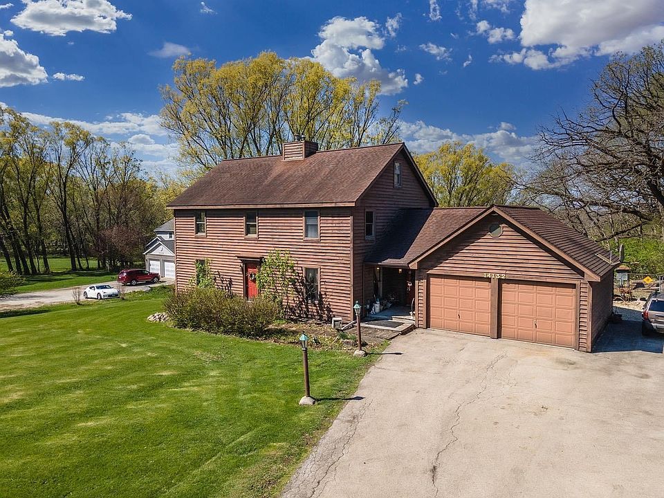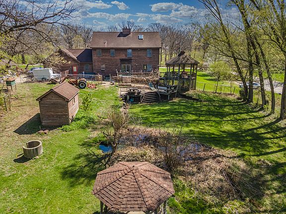 Step into this unique custom designed & built home from 1988 on a 3 acre lot...A place to hang your heart with some tender loving care from new owners! 4 bedroom plus a library/office with built in shelving! Perfect for horse & privacy lovers. Across from a forest preserve. Delightful porch for sittin' & rockin'. Wood burning stove adds charm to the spacious layout of the 1st floor. Home offers lots of extra storage space. interior stairs leading to attic which offers potential for additional living space. Full partially finished basement. Extra tall garage doors. Extra sheds outside. This home was built to last!