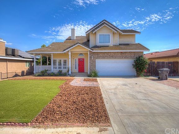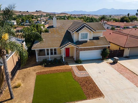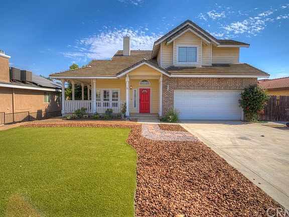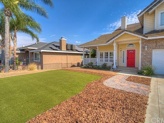 From the moment you arrive, you are greeted by a newly landscaped yard and a lovely front porch to enjoy those cool evening sunsets. This beautiful two-story home features 3 bedrooms, an office/den, 3 bathrooms, two-car garage situated on almost a quarter acre lot with room to expand! Enter the front door, and step down into the formal living room with voluminous ceilings, and lots of natural light. There is wood flooring throughout the downstairs. As you pass the living room, you'll find the separate dining room with crown molding. Steps away you enter the kitchen that offers breakfast bar, lots of cabinets and a garden window with mountain top views. The kitchen opens to the family room that also has crown molding and an accent wood beam. There is a guest bathroom and laundry room downstairs. Ascend the stairs and find the spacious master bedroom with beautiful mountain views. The master bedroom has two wardrobe closets with an en suite bathroom with double sink vanity and a separate shower room. The adjacent office/den (or make it a fourth bedroom) features custom wood molding and a matching bookshelf. You will appreciate the mountain views from all of the bedrooms. Exit the family room to the large backyard featuring a covered patio and room for a pool! Enjoy family and friend gatherings under the large Pavilion including a fire pit. Let your imagination create your paradise backyard! This home is located in one of Riverside most desirable areas.