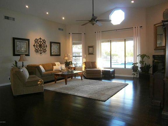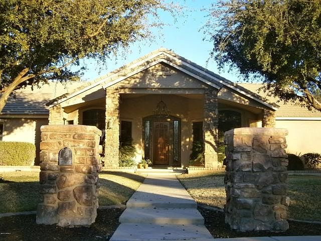Wow! Absolutely stunning custom home perfectly placed on huge 1.25+ acre irrigated lot facing a park with an 8 car garage & an RV gate!!! Dramatic columned raised entry into spacious family room w/fireplace that over looks this gorgeous back yard w/a huge extended covered patio, an outdoor kitchen, guest house w/fireplace, lighted sports court & a sparkling pool w/new paver stone decking! Beautiful island kitchen w/granite & top of the line appliances to include sub zero frig, double ovens & new duel fuel gas cooktop w/pot filler feature! Spacious bedrooms w/walk in closets! Elegant master w/remodeled bathroom is amazing! Gorgeous new dark hardwood floors, skylight, a newer $40000+ roof & newer AC....too many upgrades to mention, this home is a must see! There is a 2nd parcel #200-70-001