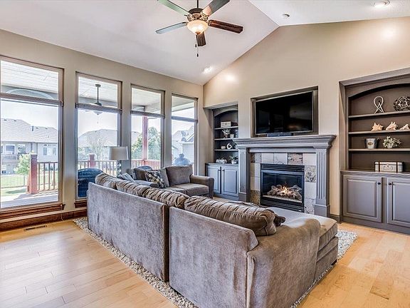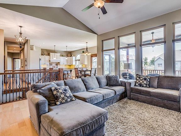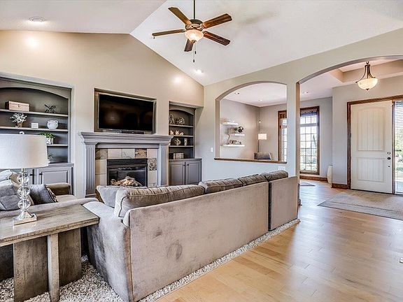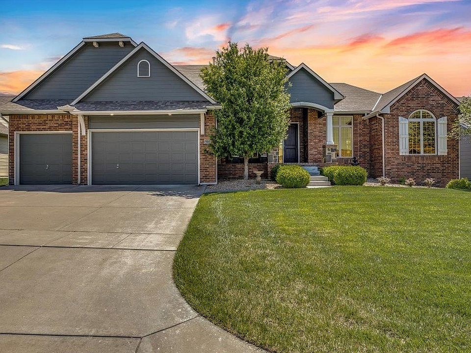 Spectacular home with captivating style and spacious open living areas located in the gorgeous Garden Walk subdivision and Andover School District! The front entry is inviting with a large porch, entry door sidelight, beautiful landscaping, and a welcoming entry space. This gorgeous home has been beautifully updated with the perfect blend of stunning wood floors, professional painted kitchen, bathroom, and wet bar cabinets, striking granite countertops, and also features expansive windows providing wonderful natural sunlight throughout the home. The main floor has awesome living space with a gorgeous living room, sitting area or formal dining room, and a huge family room that is open to the kitchen and informal dining area, with all areas have amazing natural light. The living room is exceptional with a vaulted ceiling, wood floors, and updated light gray cabinets and accent shelving on both sides of the fireplace. The living room is open to the gorgeous kitchen and the informal dining area, with a large triple window set overlooking the backyard and an exterior door to the large, covered deck – perfect for grilling out! The kitchen features fantastic white cabinets and awesome counter space, stunning granite countertops, full tile backsplash, island with a large eating bar, appliances (refrigerator, range/oven, range hood, microwave, and dishwasher), accent cabinet lighting, large walk-in pantry, and stunning wood floors. Just off the kitchen, there is a back entry area landing zone door – and you must check out the oversized garage – fully sheetrocked and painted (with awesome garage accents), professional-grade epoxy floor, garage lighting and additional can lighting! The main level layout features a gorgeous primary ensuite, including a spacious bedroom with custom double-tiered ceiling design, large bayed window area, wood floors, and a huge walk-in closet, with extra seasonal high-hanging areas and built-in shelves! The beautiful spa-like bathroom includes exquisite tile floor, two separate vanities with sinks, updated while storage cabinets and drawers, large walk-in tiled shower, separate lavatory, and an oval soaker tub with a large obscure glass window providing brilliant natural light throughout the entire bathroom. The laundry room is located off the hallway to the primary bedroom suite and includes a large folding area and hanging space. The main level also includes two additional bedrooms and another full bathroom with tub/shower, large vanity and tile floor. The finished walkout basement has incredible space with a huge family room for media viewing, large recreation area, and a beautiful wet bar with gorgeous cabinets, granite countertops, great lighting, space for a full-size fridge, a walk-in pantry (that makes an amazing liquor storage room, with a lock), tile floor, and a stylish island bar with seating area. The finished basement also includes two additional bedrooms (one with a huge with walk-in closet), a large, full bathroom with tub/shower, and an additional finished room which is perfect for an office, workout room, playroom or flex space. The main-level, covered deck has great space for relaxing and entertaining, and the screened in walk-out area provides even more covered outdoor area to enjoy! Additional exterior features include a concrete patio area just off the deck stairs, beautiful lawn and landscaping, sprinkler system, and an irrigation well. Enjoy the indoor and outdoor living with your family and friends in this fantastic home, located in a great area with easy access to highways, schools, shopping, and dining!