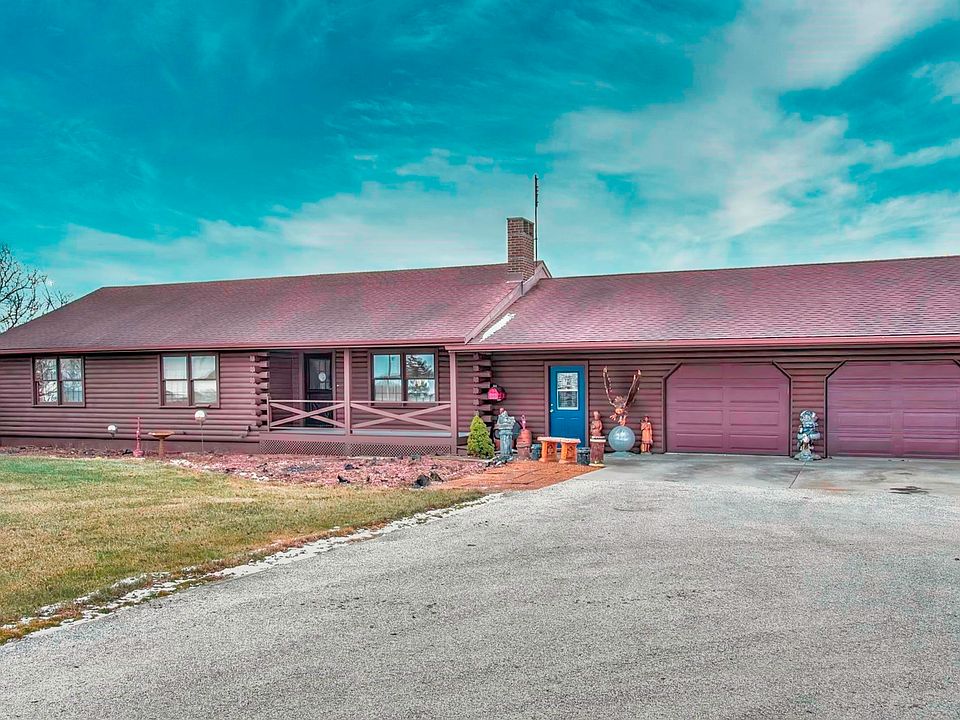 Sold As-Is. Come view this serene 3BR/2BA Log-Cabin Ranch on just Over 7 Acres! The Large, Open Living Room features a Wood-Burning Stove. The kitchen boasts custom, raised-panel hardwood cabinets. The covered rear porch enables a wonderful, uninterrupted open view of fields. Oversized 26'x28' attached garage provides abundant space for larger vehicles! There is ample Storage in the 36'x44' outbuilding, and large open basement with 2 entrances. Appliances not warranted. $5000 minimum earnest money. Will not have inspection repair option. As-is no contingencies. Buyer to verify all sq. ft., schools, and acreage.