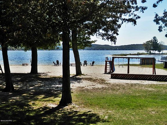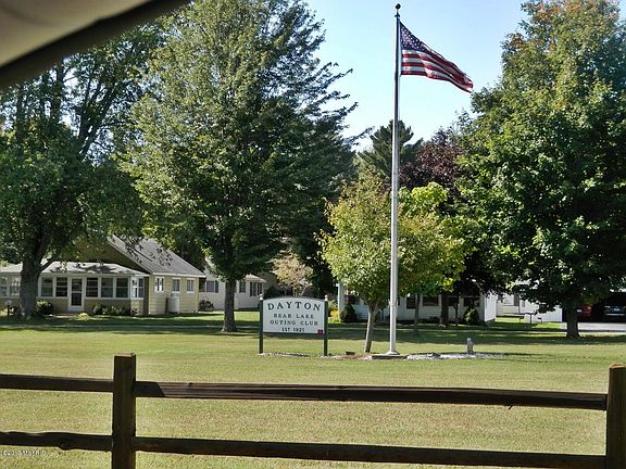 A rare offering in the Dayton Outing Club on beautiful Bear Lake! This property offers 45 acres of wooded beauty and 758 ft of water frontage. There is protected Little Bay where you can dock your up to 22 ft boat, a sandy beach, play and picnic area and fire pit. This 3 bedroom insulated cottage has 3 full baths with a half bath in the garage. Open floor plan with knotty pine walls, a brick wall fireplace, cathedral ceiling and many built-ins. Abundant Andersen windows let the sun shine in. Enjoy a view of the lake from the living and dining area.