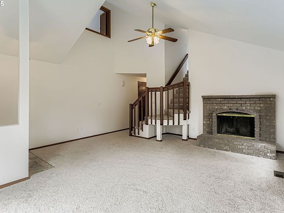 Enjoy the benefits of a large, private lot with this Tigard home. The main level greets you with vaulted ceilings and a wood-burning fireplace in the living room, creating a warm and inviting atmosphere. Fresh interior paint and brand new carpet throughout add a refreshed feel, while the home offers plenty of potential for future updates to make it truly your own. The kitchen features a free-standing range, refrigerator, dishwasher and a functional eat-bar that opens to the dedicated dining area. A sliding glass door leads out to the fully fenced backyard with a covered deck—perfect for relaxing or entertaining year-round. Upstairs, you'll find all three bedrooms, including the primary suite with a walk-in closet, attached bathroom with a shower/tub combo and a fun shutter-style window that overlooks the living room below. A second full bathroom in the hallway serves the other two bedrooms. The oversized driveway offers ample parking with potential space for an RV or boat, plus an attached oversized 1-car garage for added convenience. Located just minutes from downtown Tigard, parks, schools, walking trails, restaurants, and shopping, with easy access to Hwy 99 and I-5 for a quick commute. A fantastic location and solid bones make this home a great opportunity for your next move.