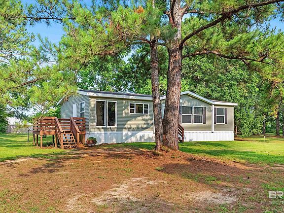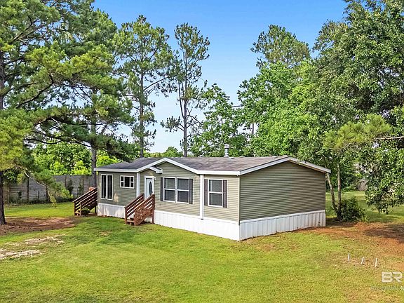 Hidden Gem on nearly 3 acres! Beautifully landscaped w/ oak trees and a long driveway that brings you to your 2021 3bedroom 2bath manufactured home. This property has endless opportunities! It has two outbuildings - one with power that was built on 2021. Park your boat, RV, or other toys in one, and your riding lawn mower in the other. This property also has two septic tanks - one of which was installed in 2021 per seller. Inside, you will find 3 bedrooms, 2 baths, living room with a propane fireplace, and wired security system on the property. Two decks to enjoy your morning coffee or evening beverage. At date of listing, the dishwasher and range have never been used per seller. This is country living at its finest, just a short drive to the white sandy beaches, minutes from Fish River Public Boat Launch. NOT IN A FLOOD ZONE. Buyer to verify all information during due diligence.
