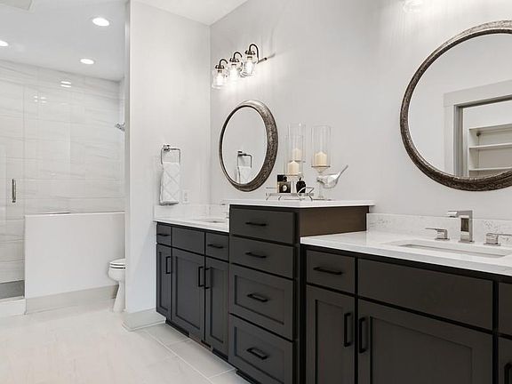 As you enter this home you will be surprised at the efficiency of the design and the open floor plan. On one side of the home, you will find two bedrooms and a full bath. On the other, a wonderful owners suite featuring a well-appointed closet and a luxury bath that walks through to the spacious dual entry laundry room. The kitchen features custom cabinets to the ceiling, a walk-in pantry, KitchenAid appliances, and a bar with floating shelves above. You'll spend most of your time at the 8x5 center island that seats six! The inviting dining area has an abundance of natural light and walks out to the deck. You will love entertaining in the great room that features a linear gas fireplace surrounded by brick and enveloped by built ins. The lower level offers a family room with a fireplace, game area, and wet bar. Two additional bedrooms and an additional bath that completes the level. Two unfinished storage rooms could be your future theatre, exercise room, wine cellar or workshop!