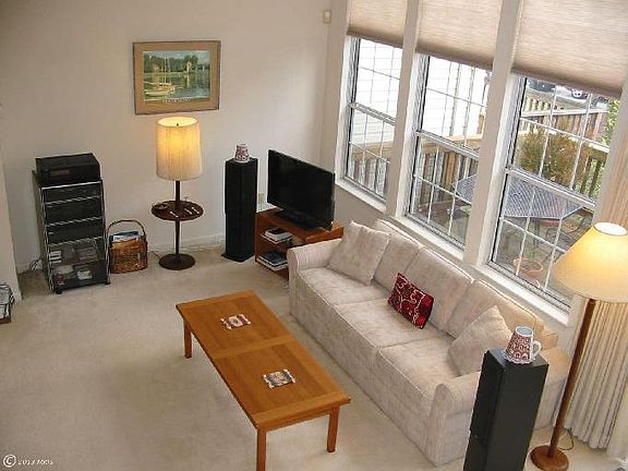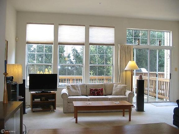 Hard to find one owner garage town home. 3 bedrooms 2 full and 2 half baths have been barely used! All decked out in neutral decor, honeycomb blinds, HVAC 2007, security system, ceiling fan pre-wire in living room , rec room in basement with fireplace and slider to flagstone underneath deck. High ceilings in living room lets the sunshine flow from front to back. HMS warranty to buyer!