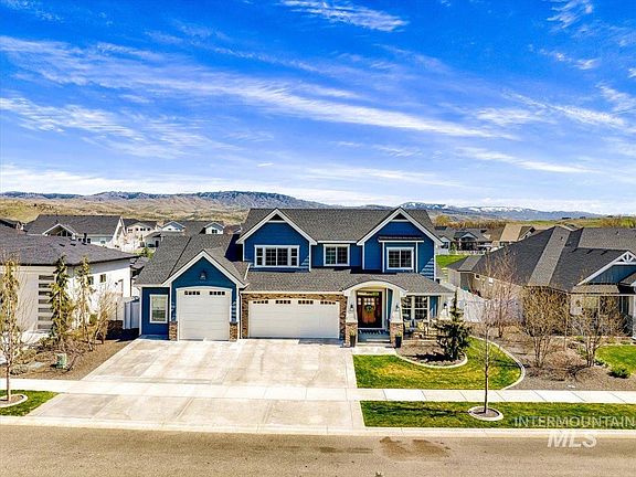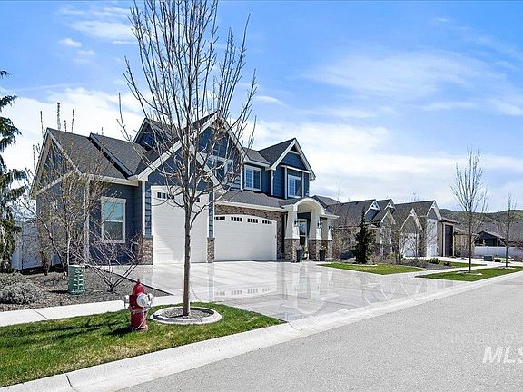 Welcome to this stunning property in the picturesque community of Dry Creek Ranch. Custom-built by Biltmore Co. this home offers unparalleled luxury & comfort with its spacious layout & premium amenities. Inside, be greeted by a grand entryway adorned with custom millwork, nine-foot ceilings & luxury vinyl floors. The heart of the home lies in its expansive kitchen with generous quartz island, double ovens, large pantry and living & dining ideal for gathering. This home features two offices to offer versatility for remote work or creative pursuits. The main floor primary suite boasts a spacious closet with built-in dresser. Convenience is key with two laundry rooms (upstairs and down)! The 1200-square foot garage has a 10x10 boat bay, leaving ample room for cars & toys. Outside, enjoy the view from your patio with east-facing backyard next to common area and offers peek-a-boo views of Bogus Basin. A community farm, pool, clubhouse, equestrian center plus more amenities to come round out this amazing home!