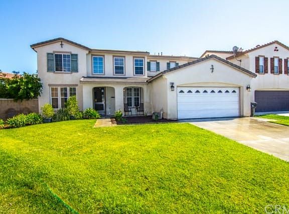Youâll love this beautiful move-in ready home located in Eastvale. The home features 2,739 Sqft of living space, with a 10,018 Sqft lot size. Five bedrooms with a spacious master suite upstairs that opens through French doors onto a large balcony. The home boasts three bathrooms, has a large kitchen with granite counter tops, island, and stainless steel appliances. The great room offers vaulted ceilings, plantation shutters, and a cozy fireplace. The separate living room has a ceiling fan and could be used as a library or office area. Separate dining room. Spacious three car garage that could also be used as a workshop. The home is located about a mile away from Eleanor Roosevelt High School and Eastvale Elementary School. McCune Family Park is behind the backyard. Views include the park, and distant mountains of San Bernardino. Truly a special home!