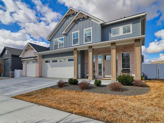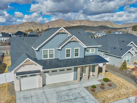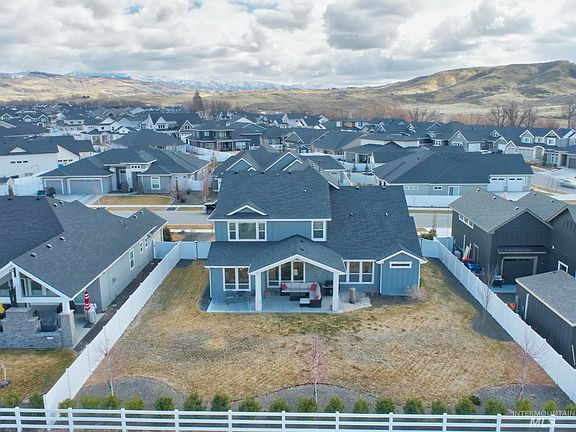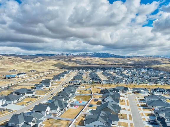 Welcome to this nearly-new home with Boise foothill views in the desirable neighborhood of Dry Creek Ranch. On just over a quarter acre, this home has four beds, 2.5 baths, a 3-car garage and is just under 3,000 square feet. Be greeted by an inviting entry, luxury vinyl-plank floors and custom lighting throughout. The kitchen features a large pantry (with counter for appliances), double ovens, quartz countertops and Bosch appliances. The main floor master's attached bath has double-sinks, quartz counters, a generous sized shower and closet. The upstairs boasts plush carpet, three more bedrooms and a bonus with custom built-in desk and cabinetry (perfect for a home office). Dry Creek Ranch features a community farm, clubhouse, pool, trails, equestrian center, and is part of the West ADA school district. Come see what this beautiful home and neighborhood have to offer!
