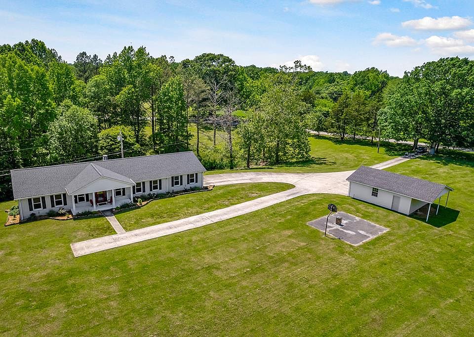 This custom 5 bedroom 3.5 bath brick ranch with a basement and a 2 car attached and a 2 car detached garage sits on a beautiful 66.15 surveyed acres on a dead end street. With lovely sunset views and within 3 miles of Center Hill Lake this home is conveniently located within 1 mile from I-40 and is just a 60 minute drive to Nashville . (the world wide theme as "King of Country Music." This beautiful country setting is a haven for wildlife. The rear of the home has a large deck and a wonderful sunroom that provides a peaceful setting that overlooks this gently-sloping acreage with beautiful mature woods around the borders of the property. Fully equipped kitchen is on the main level with a kitchenette on lower level. New roof in 2022. Tons of storage throughout. Survey on file.
