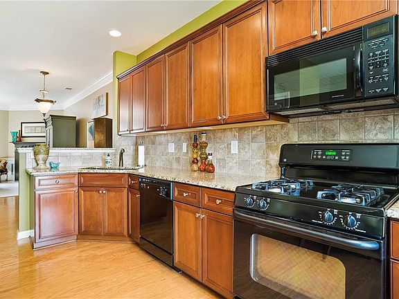 Don't miss out on this beautiful home...wont last long at this price point! 2 bedroom, 2.5 bath townhome close to shopping, restaurants and easy access to 400. Hardwood floors, granite countertops, breakfast bar. Master and guest suite on upper floor. Bonus room on lower level with walk out to patio area. 3 separate outdoor living areas makes this home feel even bigger. Fireplace in living room. Home is impeccably maintained. Top rated schools. Neighborhood pool and fire pit area. Lots of entertaining areas.