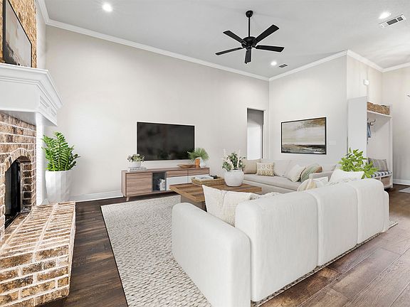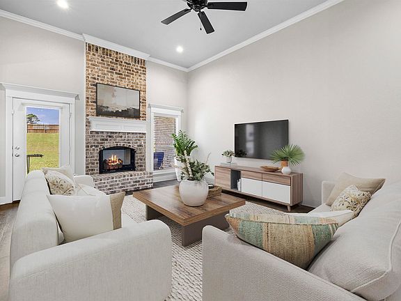 Experience the perfect balance of country charm and modern living in this newer built 4 bedroom, 2 bath home on a generous half acre lot, just minutes from South Tyler conveniences. Set in a thoughtfully planned community with spacious homesites, this property offers both privacy and room to breathe. Inside, you’ll find soaring 13-foot ceilings, an open-concept design, and refined finishes throughout, including wood floors, crown molding, and a welcoming fireplace. The chef inspired kitchen features beautiful cabinetry, solid countertops, a large island, and a gas cooktop, ideal for gathering and entertaining. The serene primary suite is a true retreat with dual vanities, a tiled walk in shower, oversized walk in closet, and a standalone soaking tub. Step outside to a fully fenced backyard with a covered patio and expansive green space, perfect for relaxing, playing, or enjoying the outdoors year round. This beautifully crafted home offers style, comfort, and space in one of Tyler’s most sought after locations.