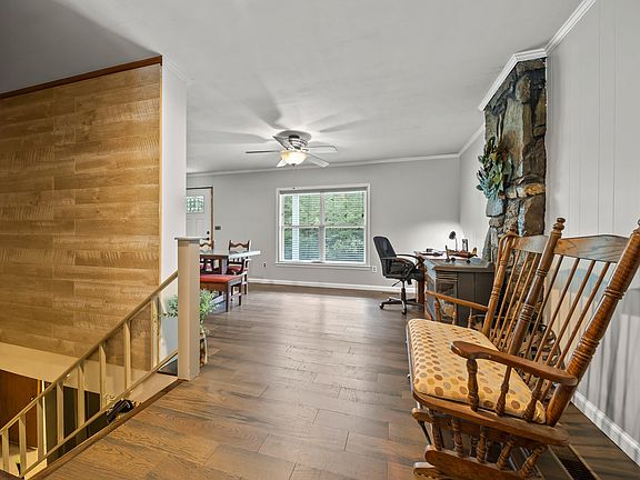 The utmost seclusion and convenience...and less than 5 minutes from I-40. Convenient to Baxter, Cookeville, the Caney Fork River and Center Hill Lake and under an hour from Nashville. This home has the Master Suite and a huge bonus room at one end, and 3 spacious bedrooms plus one full bath and one half bath at the other end. There is also a main level laundry room off the hallway. The Master Bath has a tub/shower as well as a stand-up shower plus a walk-in closet and dual vanity. The partially finished basement features a large stone fireplace with wood stove, a mud room with storage plus a utility room and 2 more finished rooms with many potential uses such as storage, hobby rooms or home gym.There are 2 garages, on one main level behind the home and one in basement served by 2 driveways
